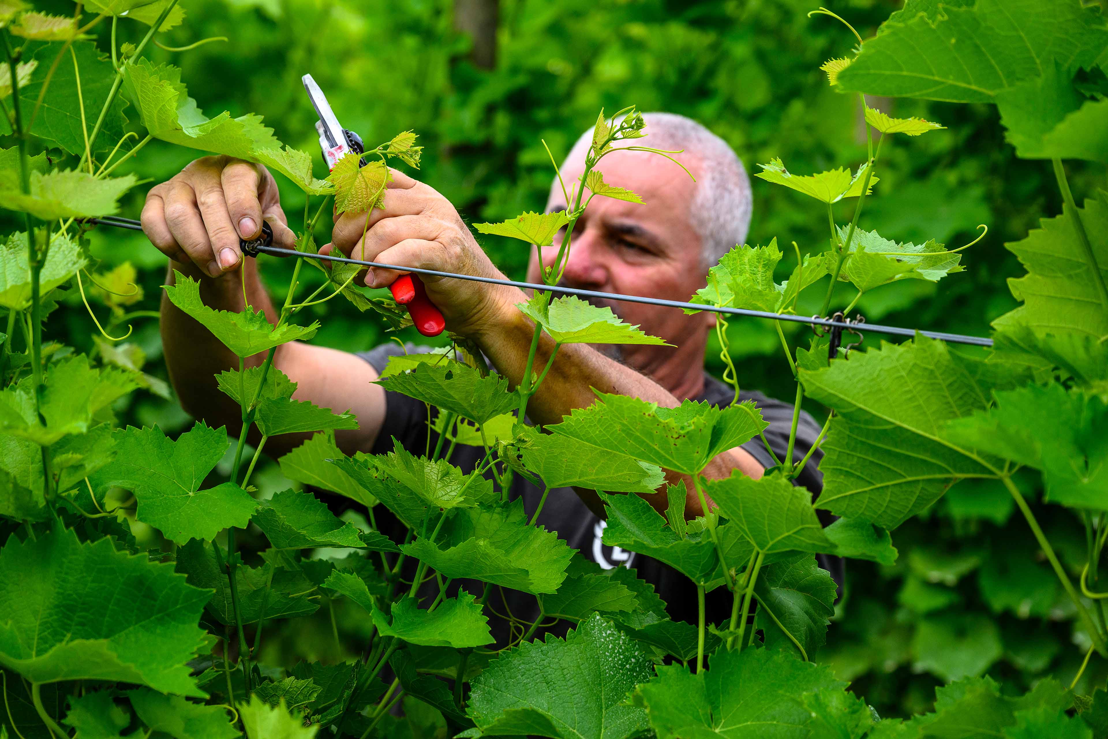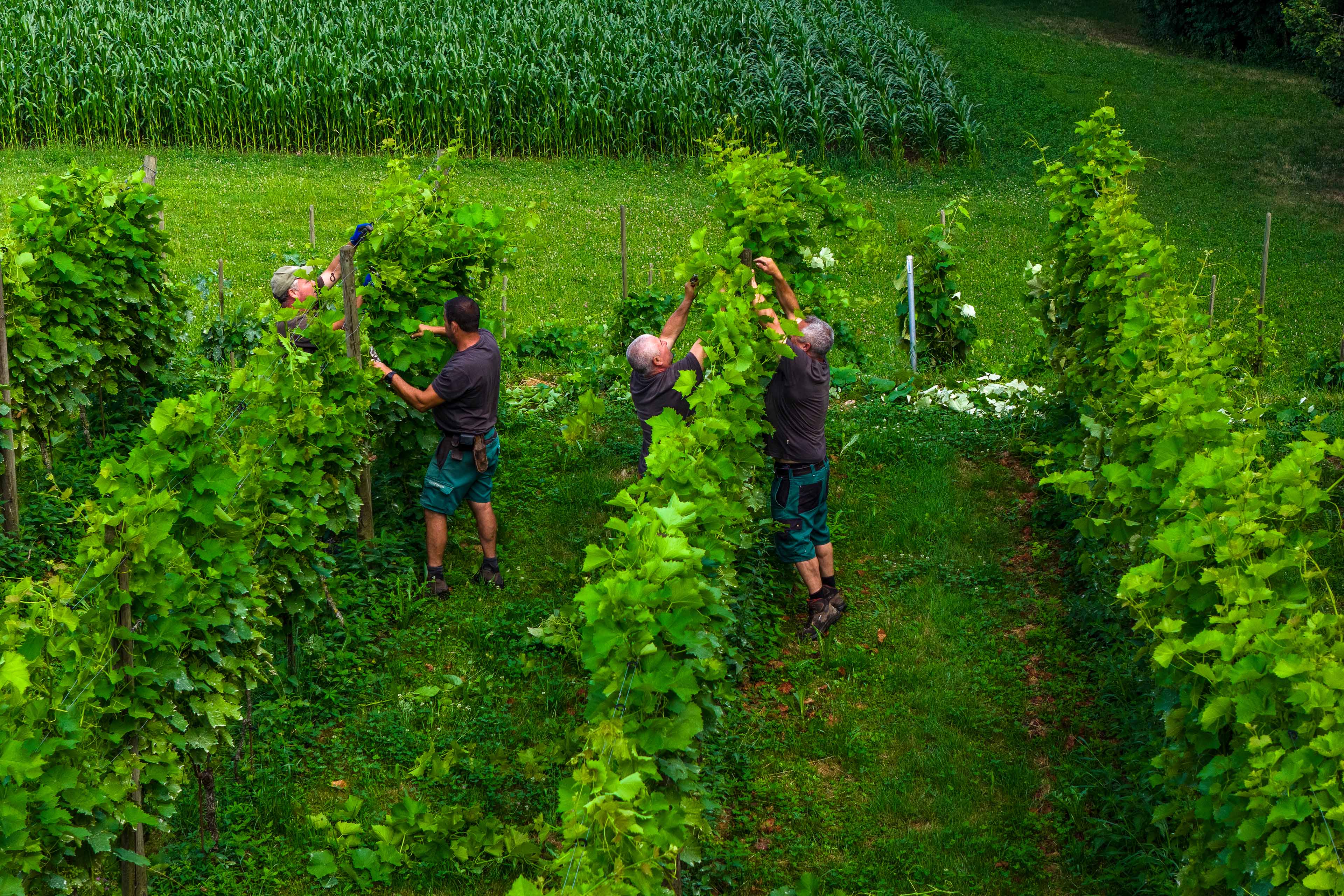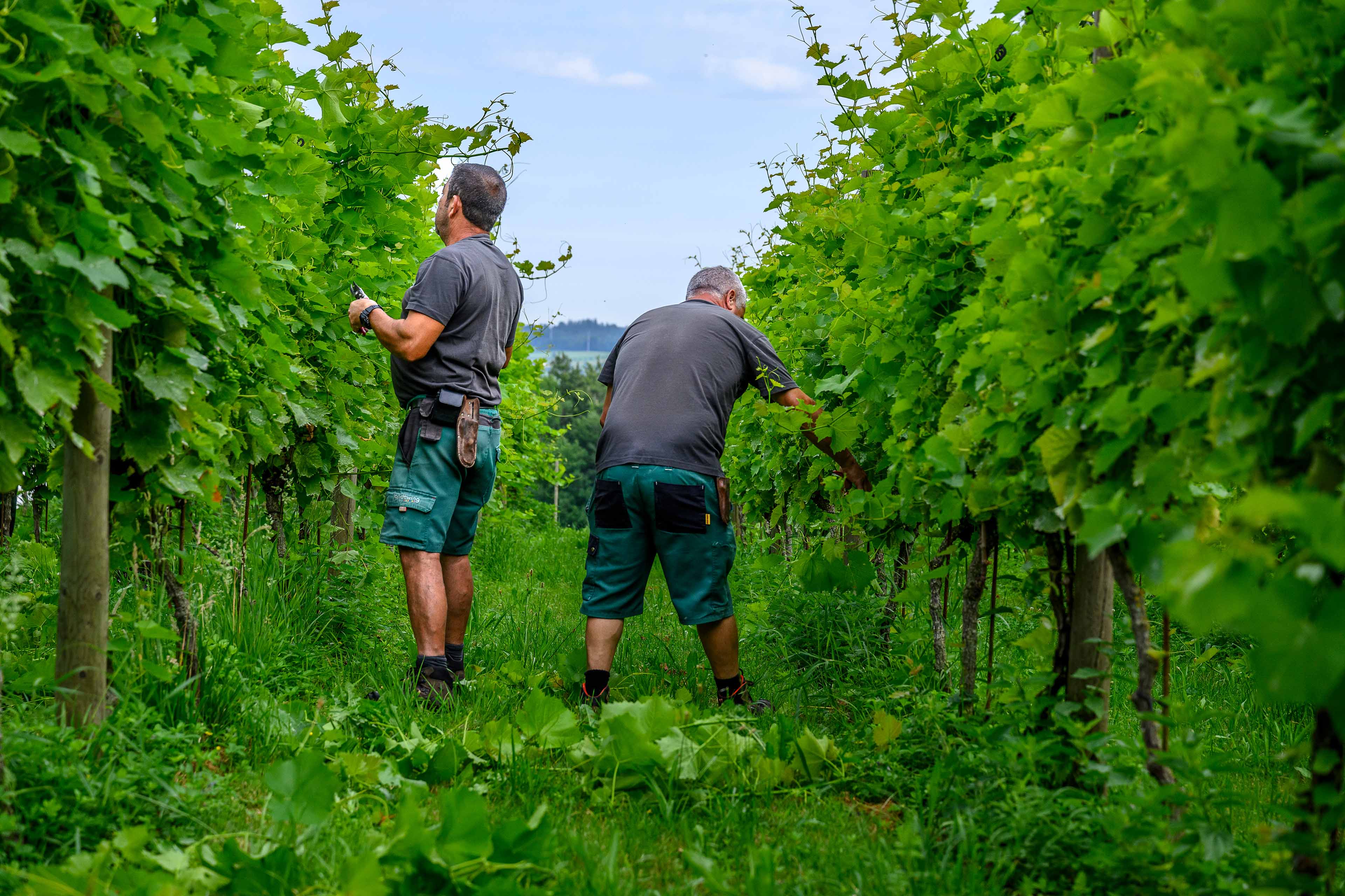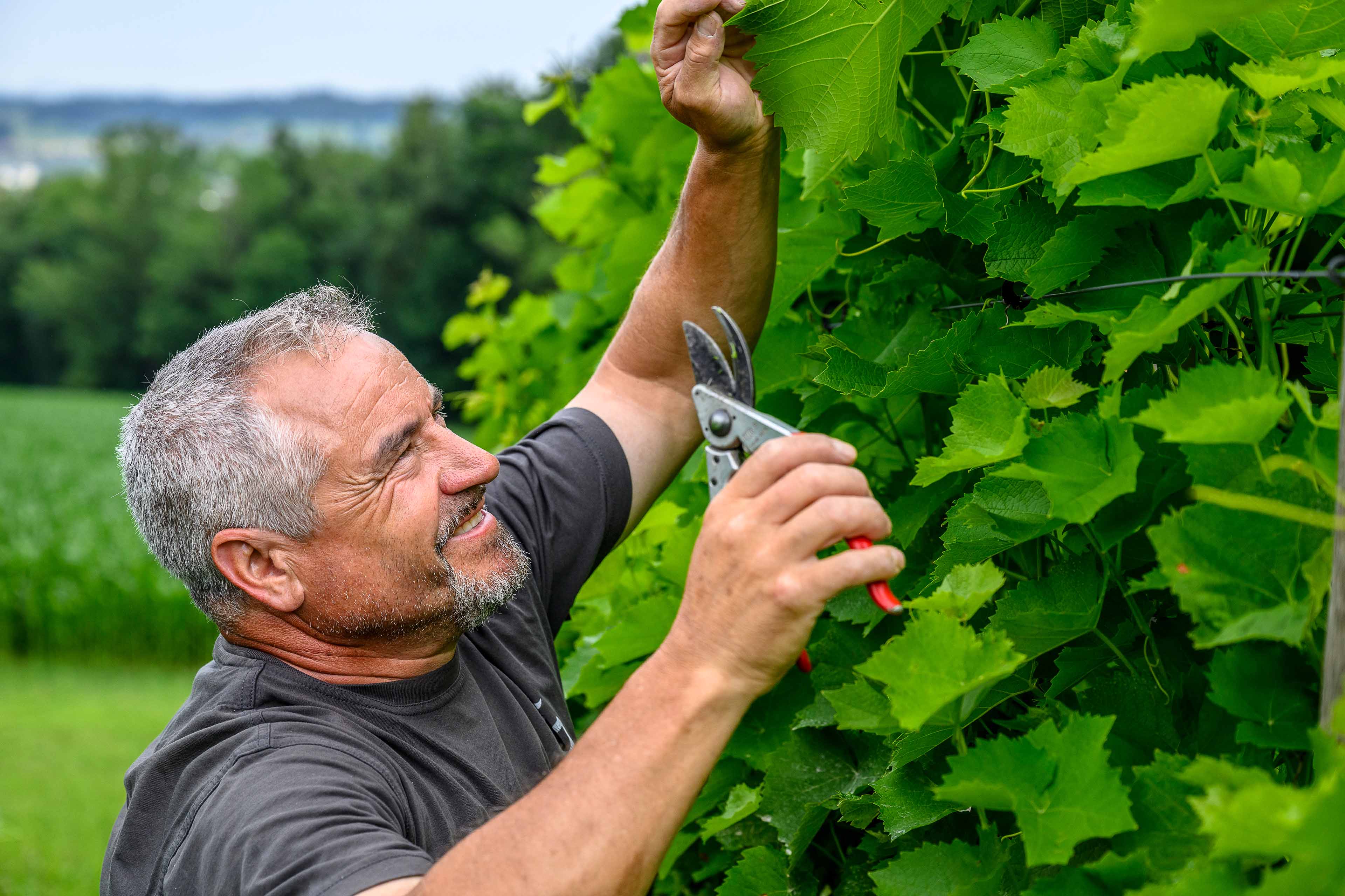 Unsere Liebe zum Detail und unsere Leidenschaft für Gartenbau zeigen sich auch noch in einer weiteren Facette: Wo einst unsere Baumschule stand, präsentiert sich heute unser Rebberg. Unter der Federführung von Jost und Susanne Landtwing, welche sich in Sachen Weinbau weitergebildet haben, hilft das ganze Team beim Unterhalt und beim Ablesen der Trauben. Und aus unserer Ernte entsteht im aargauischen Tegerfelden dann feiner Wein.